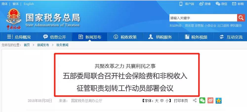 还好近日有消息称,从2019年1月1日起,机关事业单位养老保险和城乡居民养老保险征收职能,先行移交至税务部门管理,而企业养老保险征收职能目前将暂缓移交,留待有关配套政策和制度完善后,再行移交。