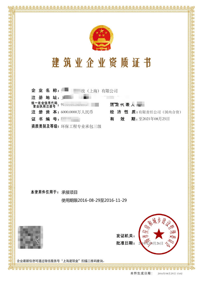 任何建筑公司进行相应的经营活动都需要申请相应的资质证书,环保工程企业也不例外,环保工程公司需要申请环境保护工程资质证书。