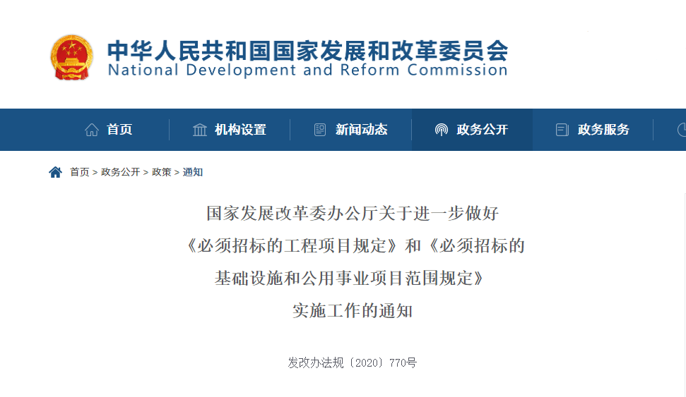 国家发展改革委办公厅日前发布关于进一步做好《必须招标的工程项目规定》和《必须招标的基础设施和公用事业项目范围规定》实施工作的通知(发改办法规〔2020〕770号,以下简称770号文),对《必须招标的工程项目规定》(国家发展改革委2018年第16号令,以下简称16号令)和《必须招标的基础设施和公用事业项目范围规定》(发改法规规〔2018〕843号,以下简称843号文)实施工作进行指导。