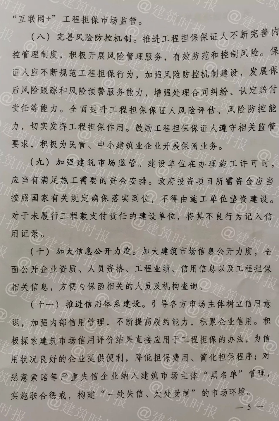 6、加大信息公开力度。全面公开企业资质、人员资格、工程业绩、信用信息以及工程担保相关信息。