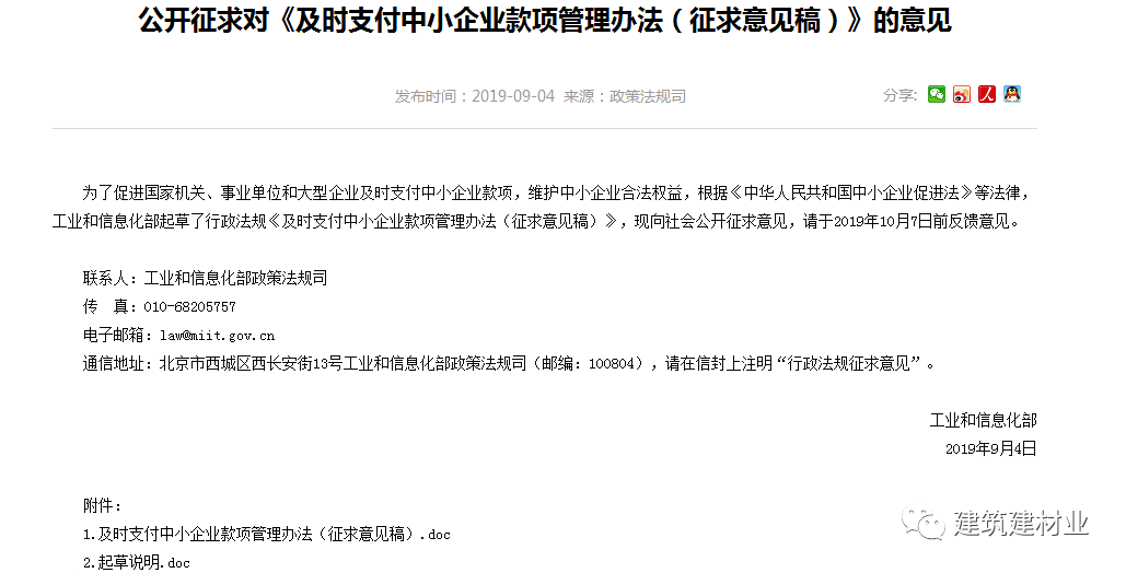 9月4日,工信部发布《及时支付中小企业款项管理办法(征求意见稿)》,明确提出: