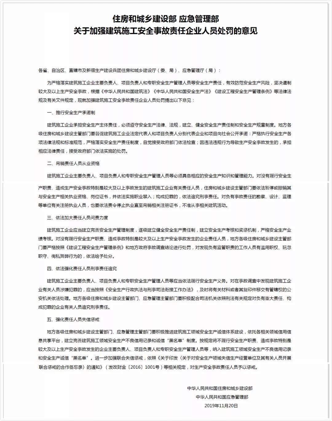 ——《住房和城乡建设部 应急管理部关于加强建筑施工安全事故责任企业人员处罚的意见》解读