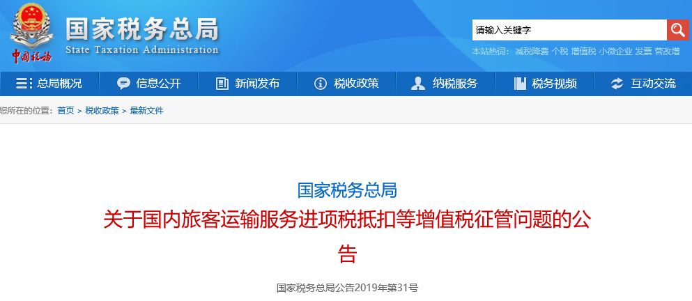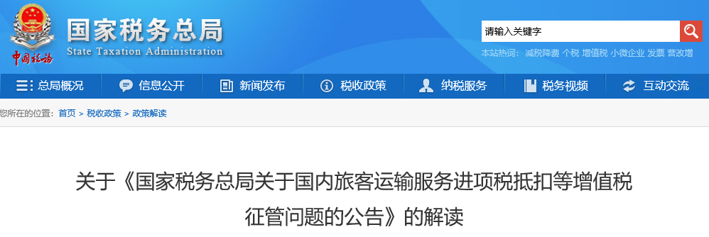 《国家税务总局关于国内旅客运输服务进项税抵扣等增值税征管问题的公告》解读